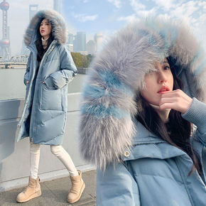 宽松加厚大毛领羽绒服女中长款过膝2021年新款冬季...