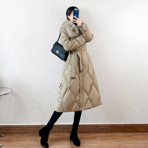 羽绒服女中长款2021年新款白鸭绒收腰时尚洋气加厚...