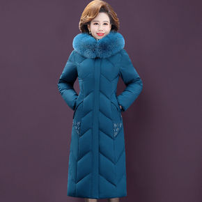 中老年妈妈装冬装女长款过膝加厚羽绒棉衣女加肥加大码...