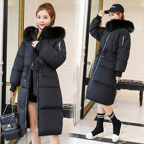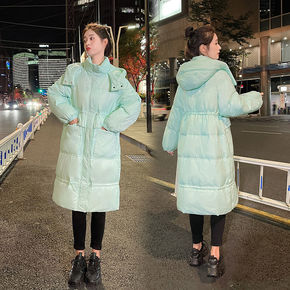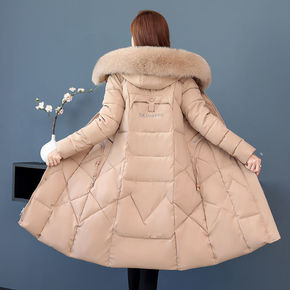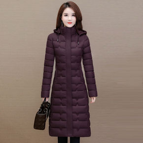 羽绒服女长款2021新款过膝连帽时尚修身妈妈装白鸭...
