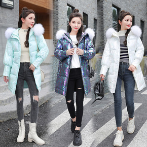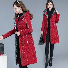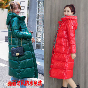新款亮面羽绒棉服女中长款冬季新款韩版修身过膝长款免...
