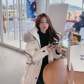 高端加厚羽绒服女中长款面包服韩版宽松冬季过膝保暖白...