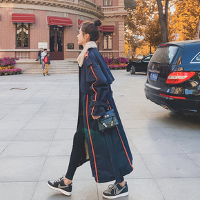 实拍ins小香风撞色包边大毛领连帽宽松面包服过膝长...