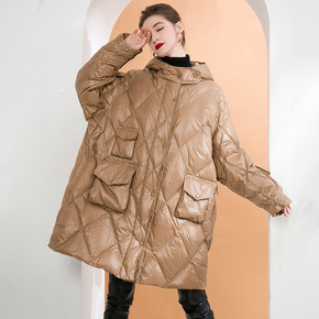 欧美风时尚高端大气女士羽绒服2021秋冬加长加厚过...