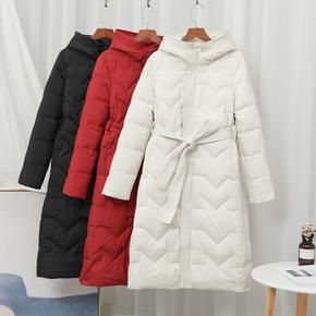 2021秋冬新款羽绒服女加厚系带外套连帽中长款羽绒...