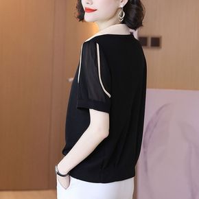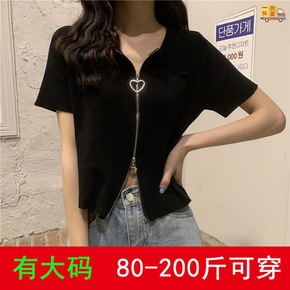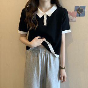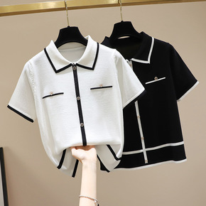 码短袖针织衫女夏装胖妹妹显瘦减龄翻领冰丝恤上衣20...