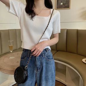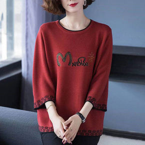 新款T恤女夏季七分袖洋气针织衫圆领套头胖mm打底衫...