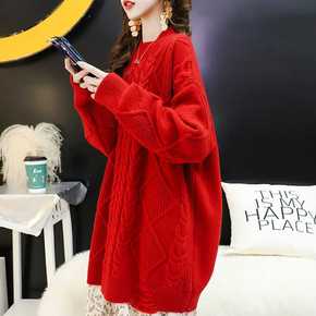 韩版慵懒风外穿毛衣女秋冬中长款胖妹妹遮肚子打底衫大...