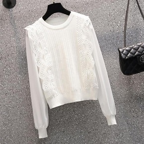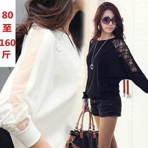 春秋加肥加大码女装胖MM宽松显瘦蕾丝网纱打底衫蝙蝠...