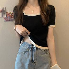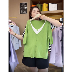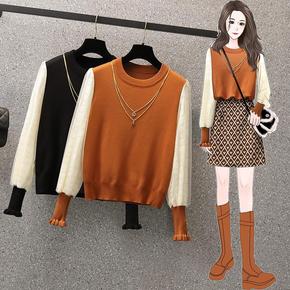 大码早装新款显瘦假两件上衣胖妹妹减龄时尚针织毛衣打...