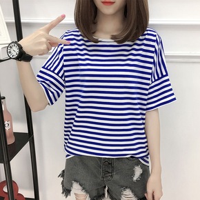 2022包邮韩版东大门明星款条纹胖MM海魂蝙蝠衫一...
