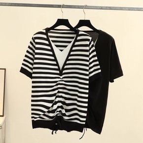 针织衫条纹恤胖妹妹显瘦上衣胖短款宽松夏季薄款小众甜...