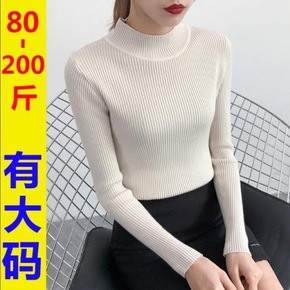 加肥加大码春季半高领套头毛衣打底衫女胖妹妹内搭长袖...