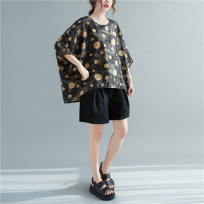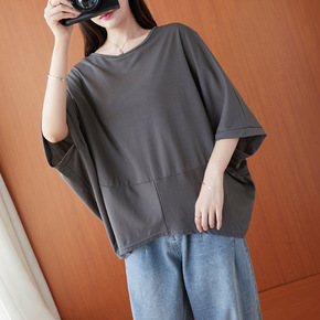 2022新款夏装蝙蝠衫胖MM纯色显瘦百搭上衣女大码...