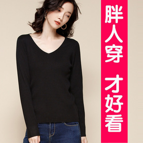 大码女装v领小香风针织衫上衣季胖妹妹宽松显瘦毛衣长...