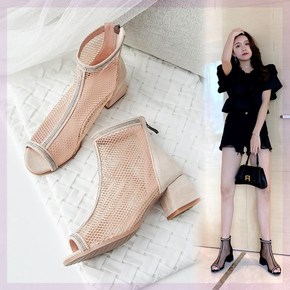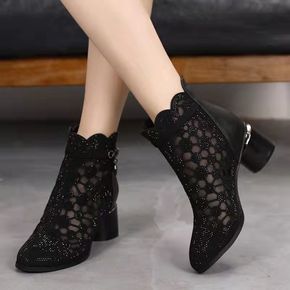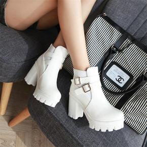 2022秋冬新款短靴女系带粗高跟性感外贸大码时尚马...
