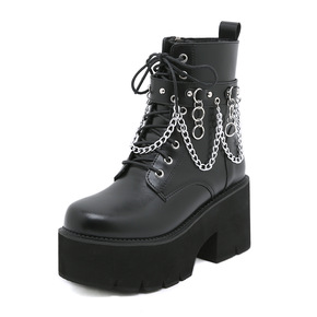 2022秋冬新款短靴女粗高跟厚底彩色系带英伦风外贸...