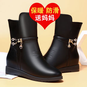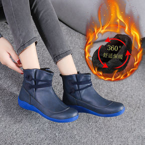 妈妈鞋棉鞋加绒女靴中老年防滑保暖平底大码圆头女士中...