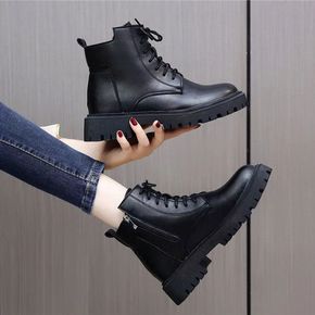 马丁靴女2022秋冬季新款英伦风平底机车靴女大码短...