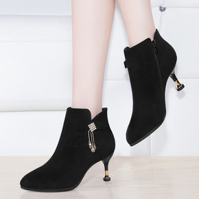 磨砂短靴女靴春秋冬季新款加绒细跟中跟小跟大码翻毛皮...