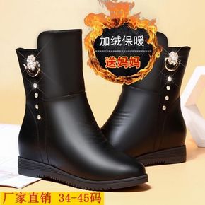 妈妈鞋棉鞋加绒女靴中老年防滑保暖平底大码42圆头女...