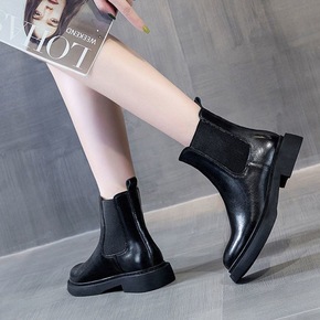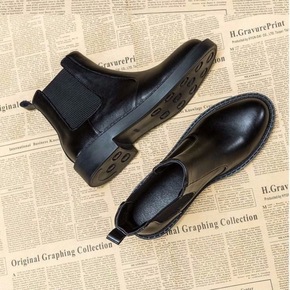 35-43 大码女鞋新款切尔西短靴41加绒厚底英伦...