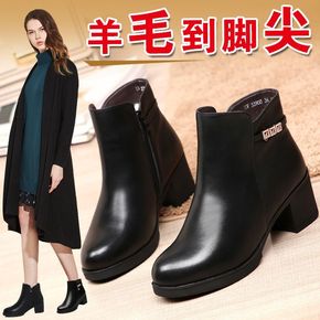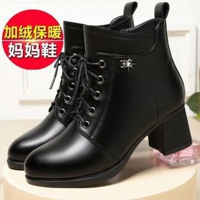 短靴女冬新款妈妈棉鞋加绒保暖羊毛靴大码粗跟中年女靴...
