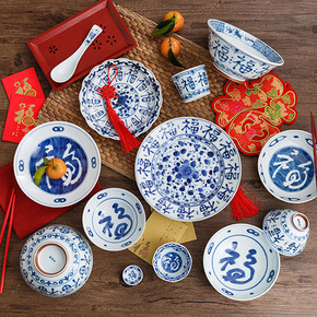 碗盘家用10人餐具碗碟套装青花瓷中式陶瓷轻奢米饭碗...