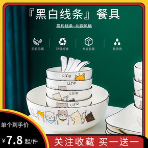 北欧大碗汤碗面碗家用8寸碗单个可爱猫咪陶瓷餐具大号...