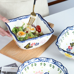 韩式泡面碗大碗汤碗田园风蝶恋花家用陶瓷碗大号菜碗沙...