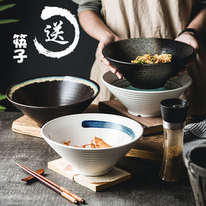 日式北欧汤盆家用陶瓷大号大碗汤碗泡面碗餐具带盖微波...