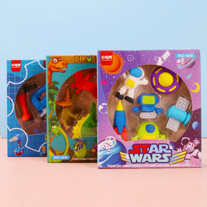 创意太空橡皮擦套装礼盒恐龙礼品可爱造型小学生学习文...