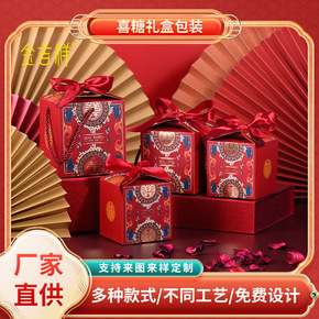 糖果包装盒喜糖盒婚庆伴手礼中式创意装糖果方形烫金结...