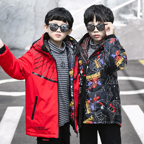 男童冬季蜘蛛侠加棉加厚保暖棉衣2021新款儿童双面...