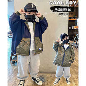 包邮童装儿童两面穿棉服2021年新款冬装男童连帽工...