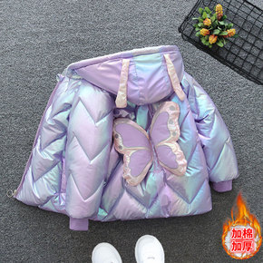 女童棉衣冬装2022新款童装洋气亮面女孩羽绒棉袄加...