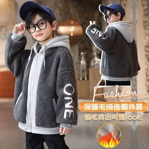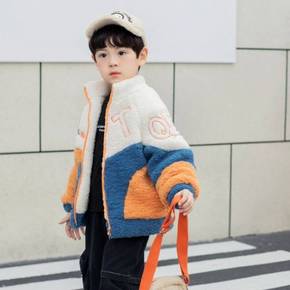 男童夹棉外套2021秋冬装羊羔绒新款儿童洋气绣花加...