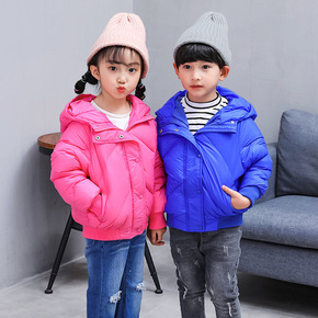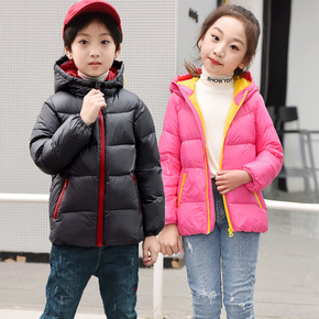 冬中童羽绒服短款连帽毛领加厚白鸭绒儿童羽绒服男童女...
