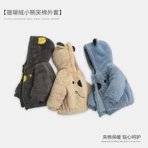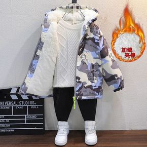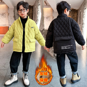 童装男童外套冬装新款夹棉加厚儿童兔毛内衬保暖棉衣韩...