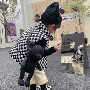 女童2021冬装新款儿童羽绒棉服中小童格子保暖背心...