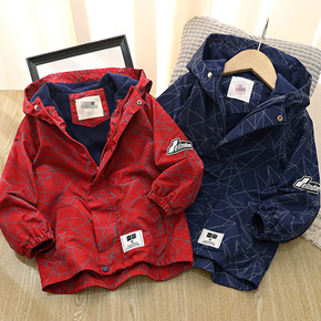 欧美几何线条~男童保暖加绒外套中大童连帽冲锋衣休闲...