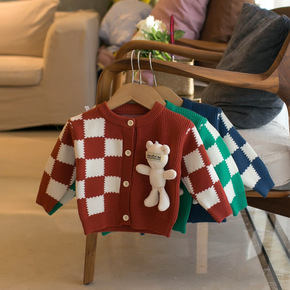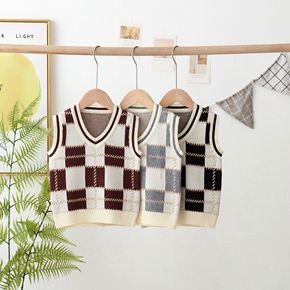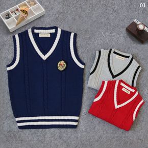 新款儿童毛衣卡通格子背心男童女童韩版针织百搭毛衫洋...