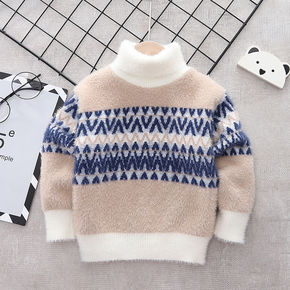 韩版复古个性卷边儿童装毛衣2022秋冬男女中童宝宝...