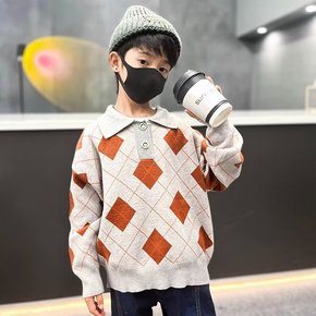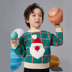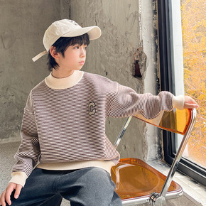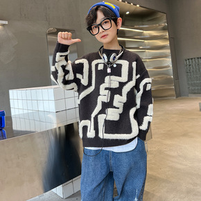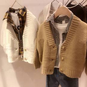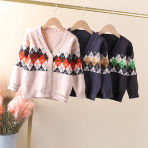 新款格子文艺气质毛衣/针织衫休闲童装男长袖ins原...