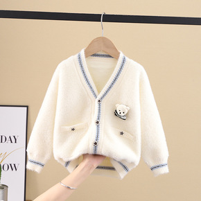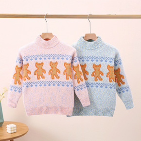 儿童水貂绒雪尼尔毛衣2022冬装新款小熊加厚中大童...