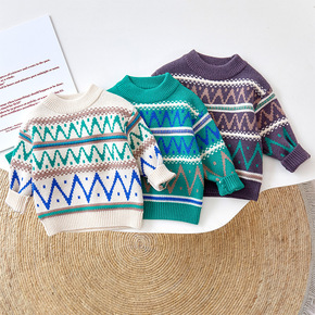 2022新款儿童套头毛衣棉线宝宝秋冬打底针织线衣男...