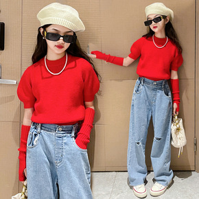 童装儿童圆领毛衣薄款2022冬季新款女童针织衫外穿...