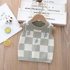 跨境代发儿童毛衣马甲2022秋季新款韩版洋气方格刺...