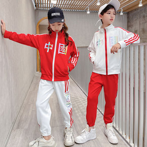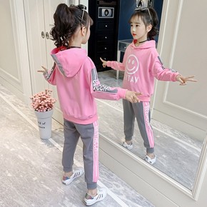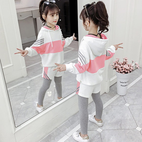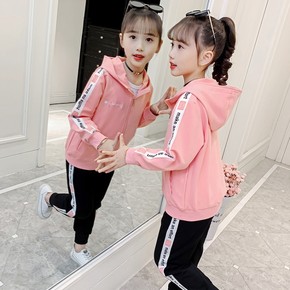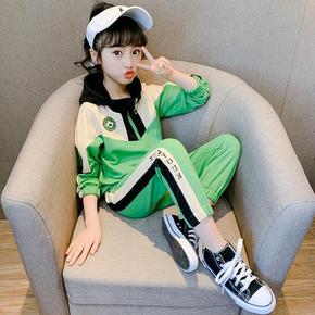 校服童装女童运动套装2021秋季新款儿童拼色连帽卫...