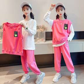 女童秋装套装2021新款洋气中大童网红时髦儿童装衬...